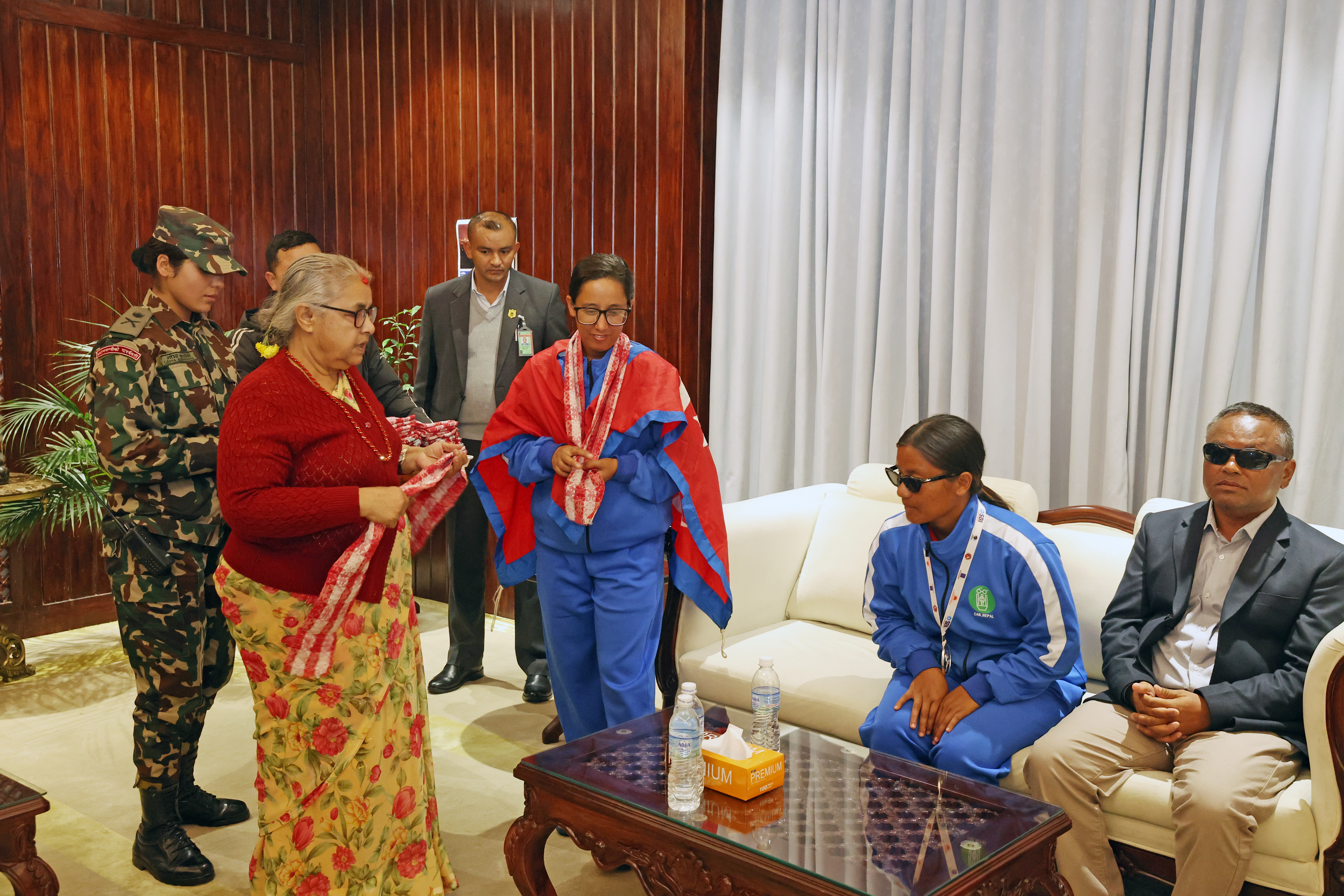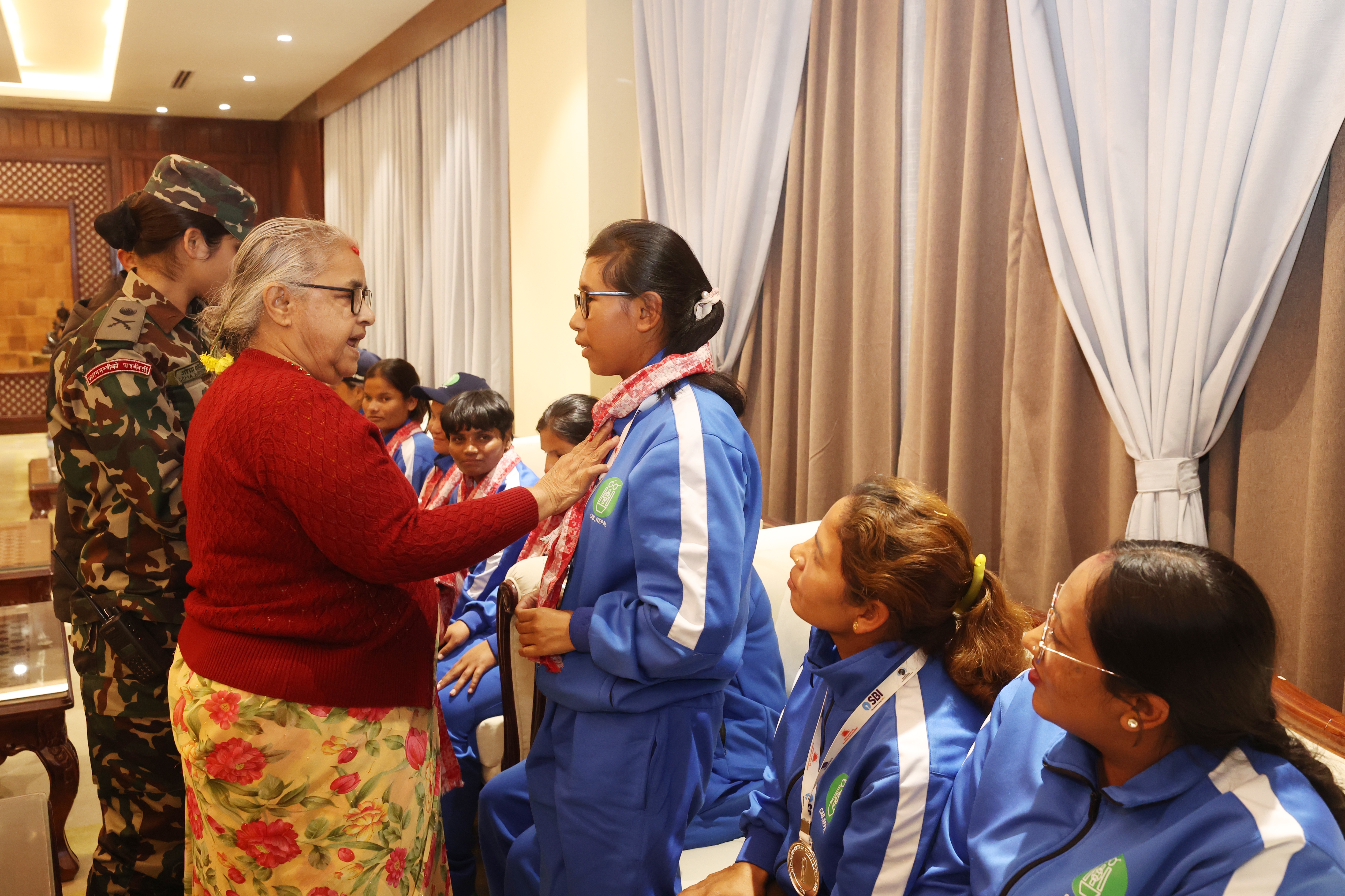 दृष्टिविहीन महिला टी–२० विश्वकप उपविजेता नेपाली टोलीसँगको भेट।